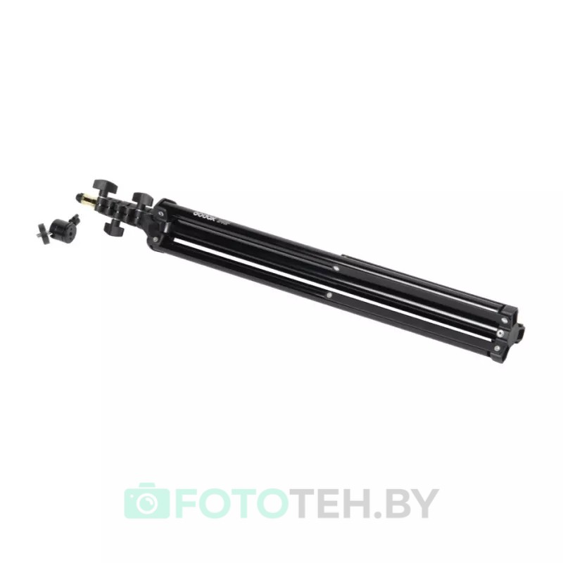 Переносная складная алюминиевая стойка-тренога Godox 240F с телескопической колонной для установки цифровых камер весом до 2 килограмм в фото- и видеостудии, а также для использования во время съемок на пленере. Длина стойки в сложенном виде - 67 см, максимальная высота 240 см, вес 1.2 кг.
