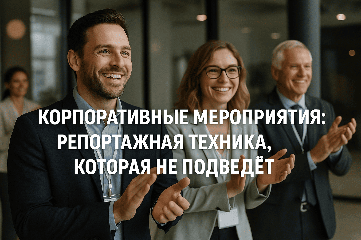 Приветственная зона: 24–70 на широкой стороне, вспышка в потолок/стену, кадры рук, бейджей, деталей.